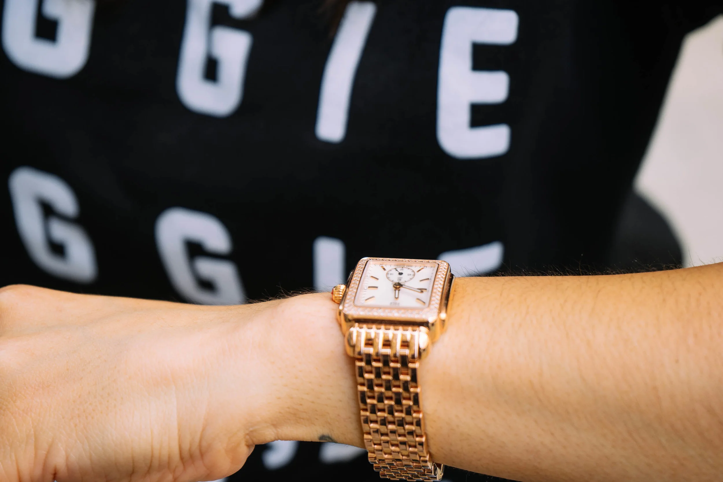Sweatshirt: Urban Outfitters | Skirt: Movida (love this one!) | Sneakers: Nike | Watch: Michele | Sunglasses: Wild Fox | Bracelet: J. Crew | Earrings: Stella & Dot | Lip: Ruby Woo