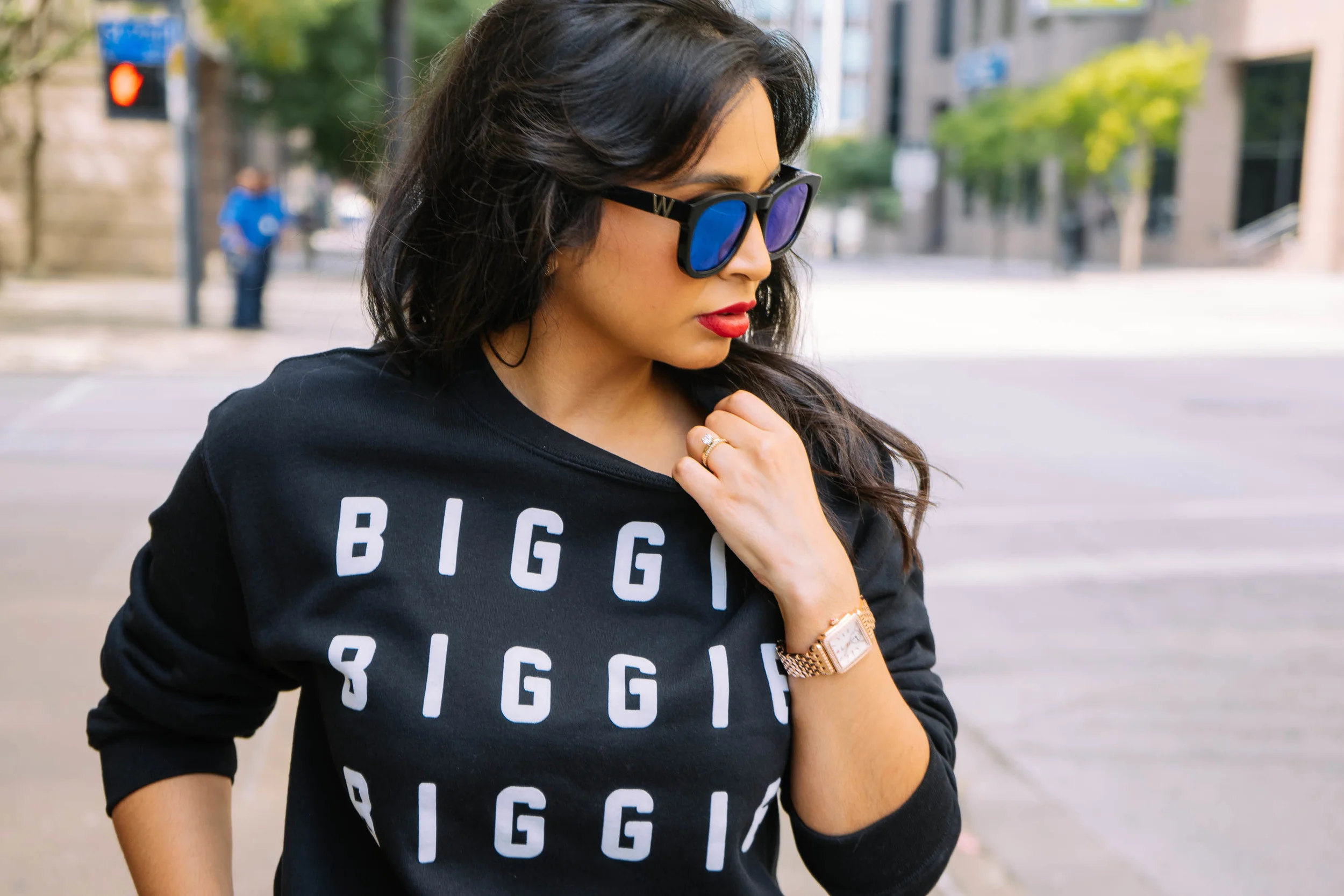 In case you were wondering, I am most definitely a Notorious B.I.G fan. My love for hip-hop has been with me as long as I can remember. This beauty (the sweater) was a surprise! One of my best friends, JB Sosa, gifted this sweater to me, and I was totally STOKED! To paint you a picture, if any Biggie song were to come on at any moment when we are together, we lose our minds (and of course sing along!)