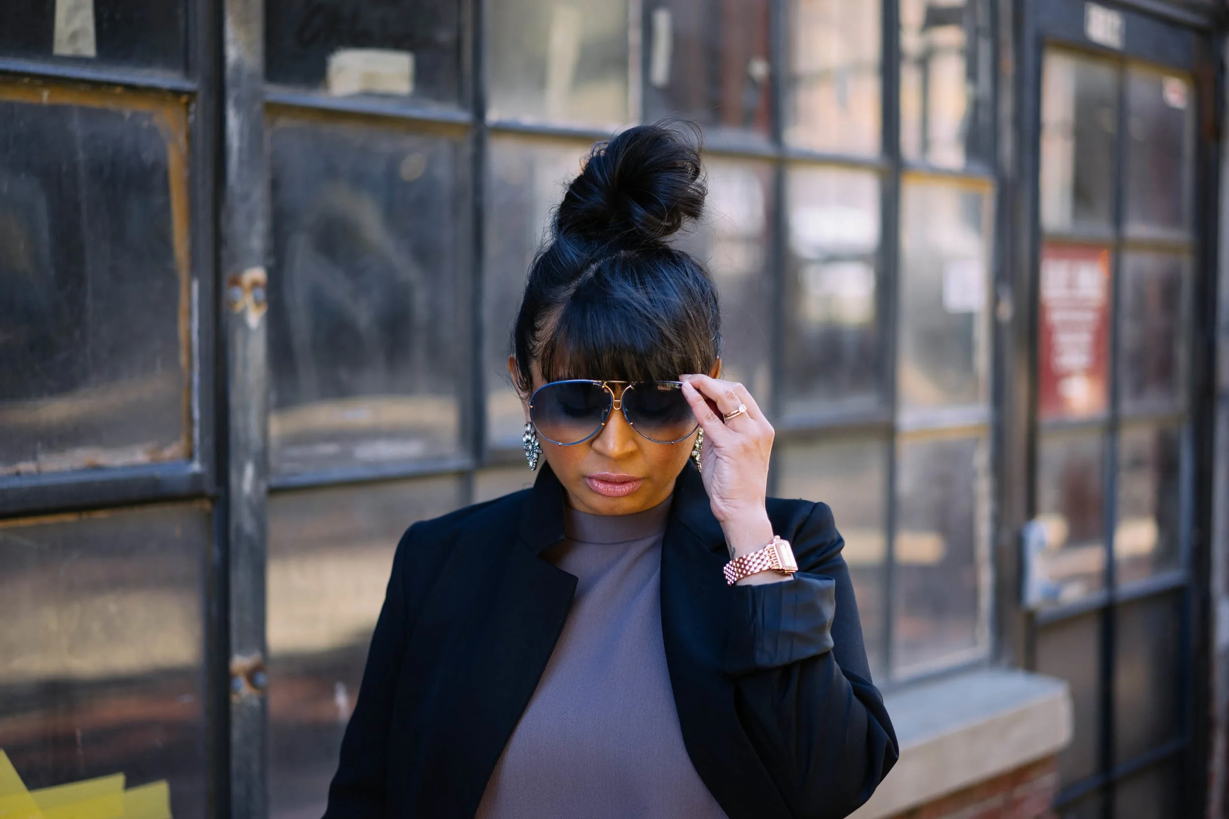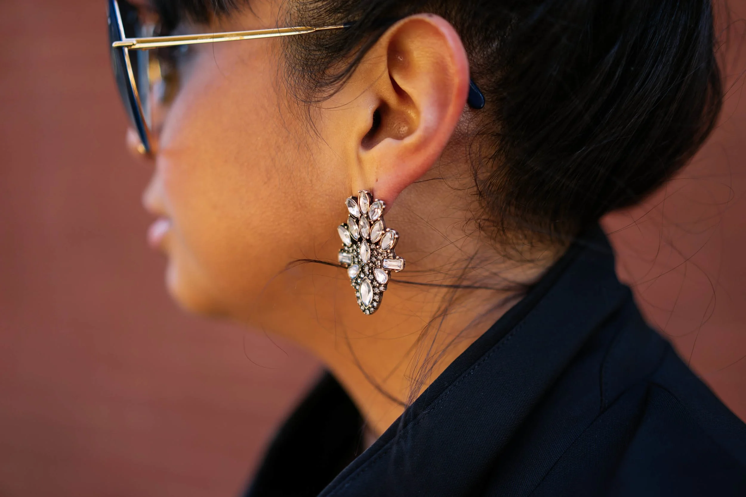 I kept my outfit minimal to allow the more glamorous pieces to stand out: my mother's sunglasses and these statement earrings.