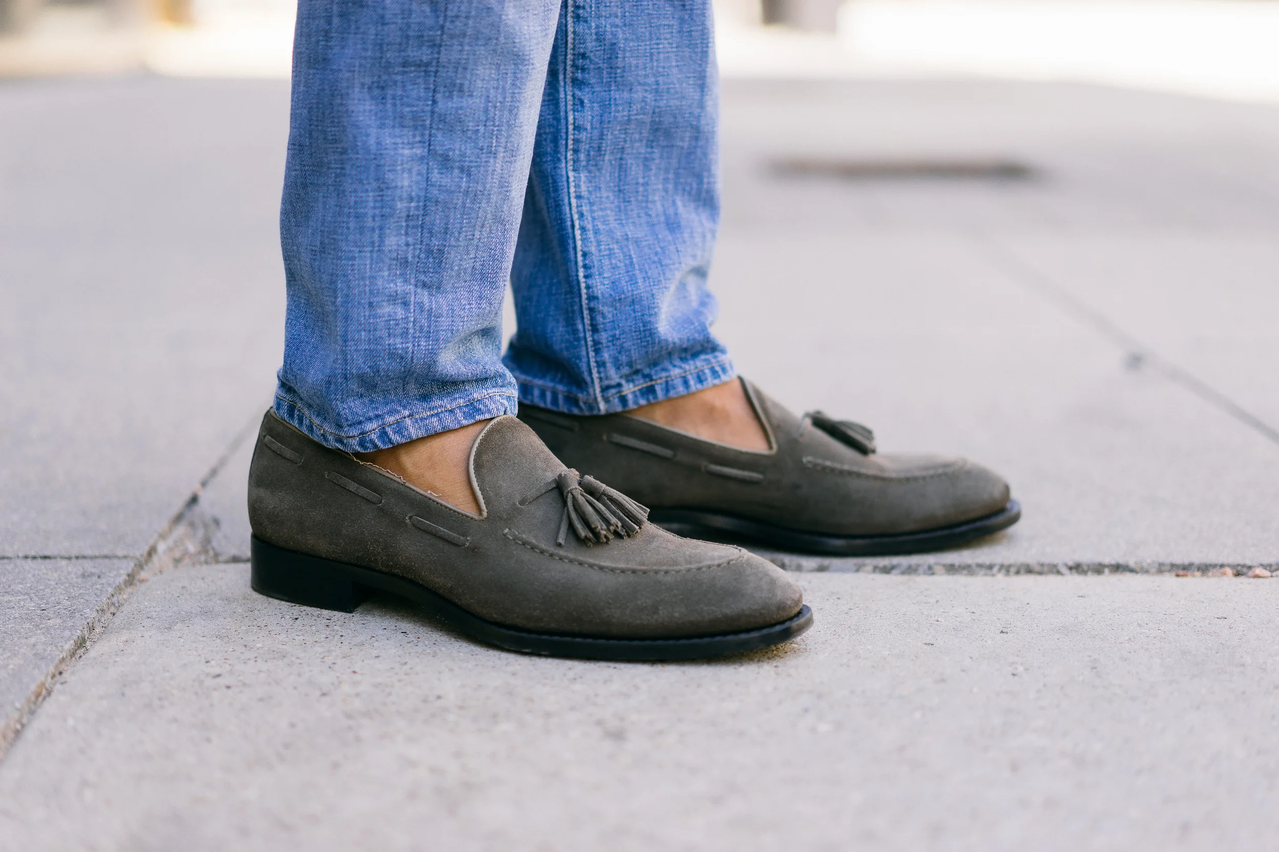 There is also a beauty in the dichotomy of the two parts: tassel loafers are frivolous in nature-- a simple slip-on shoe with a dumb moment of decoration lying on the vamp like a Victorian throw pillow. Jeans on the other hand (perhaps America's greatest contribution to fashion), are undeniably utilitarian-- no matter how dark, selvedge, or even expensive, you're not wearing them in formal settings. Thus, the combination of these two items makes zero sense but all the sense in the world. However, you must ensure your jeans fit perfectly and that your loafers lean more Pitti Uomo than 80's lawyer to pull off this look successfully.