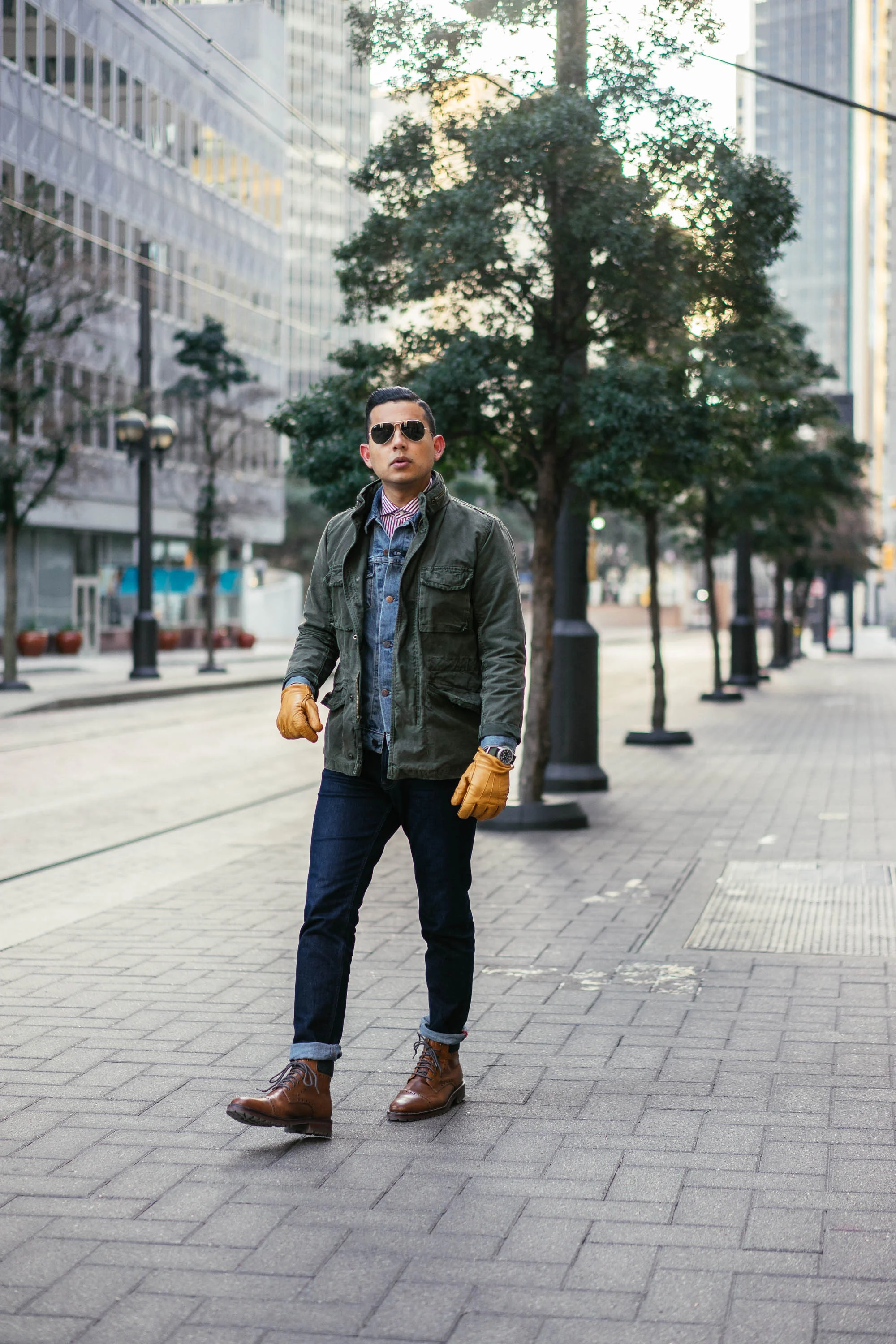 Field Jacket: Gap | Denim Jacket: Levi's | Shirt: Suitsupply (also dig this one) | Jeans: H&M | Boots: Johnston & Murphy | Gloves: Jack Spade (similar) | Watch: Jack Mason | Sunglasses: RayBan