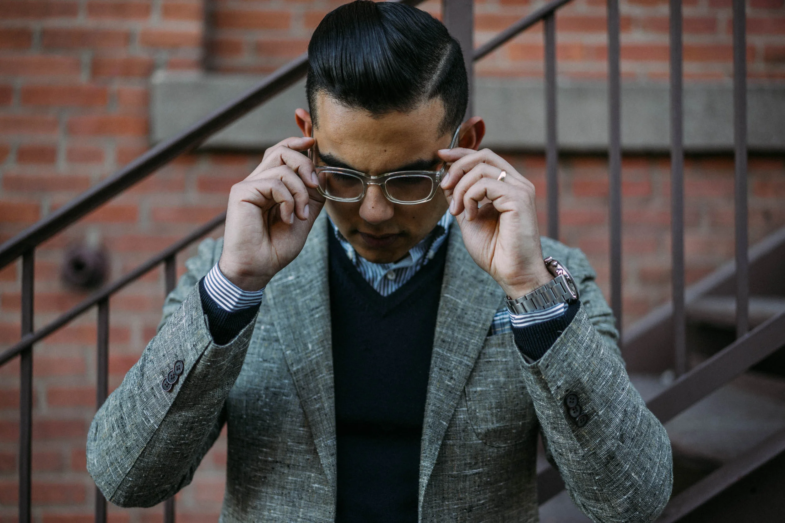 Jacket: Suitsupply (just like this one) | Sweater: Brooks Brothers | Shirt: Suitsupply (similar here) | Jeans: Levi's | Boots: Johnston & Murphy | Watch: Shinola | Glasses: Moscot (just like these) | Pocket Square: Ralph Lauren (also dig this one)