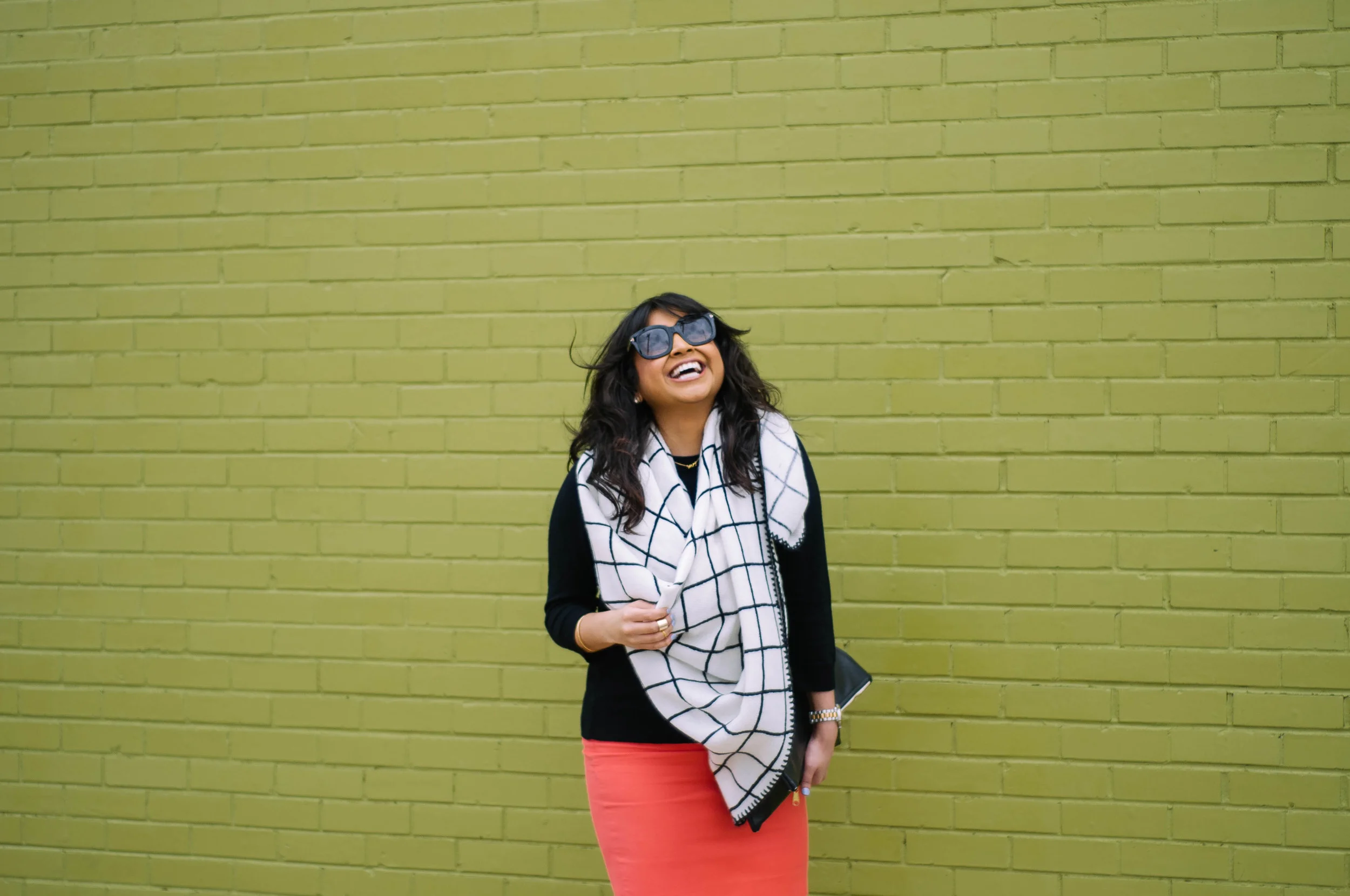 Skirt: J.Crew (more colors here) | Sweater: J.Crew | Shoes: Sam Edelman | Sarf: ASOS (just like this one) | Clutch: American Apparel (similar here) | Necklace: Kate Spade (also love this one) | Rings: Forever XXI, Gorjana | Sunglasses: Tom Ford | Watch: Michael Kors (similar)