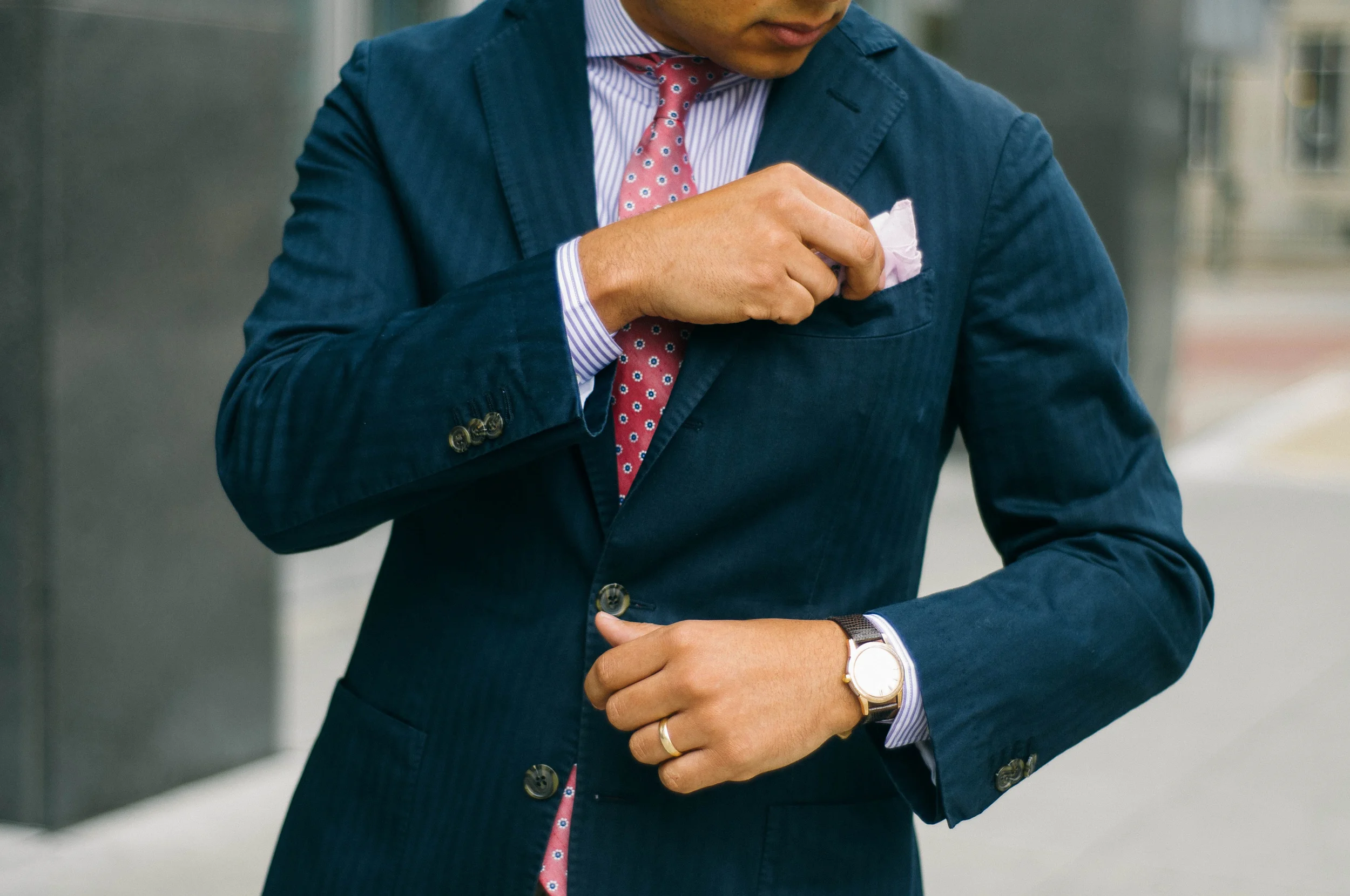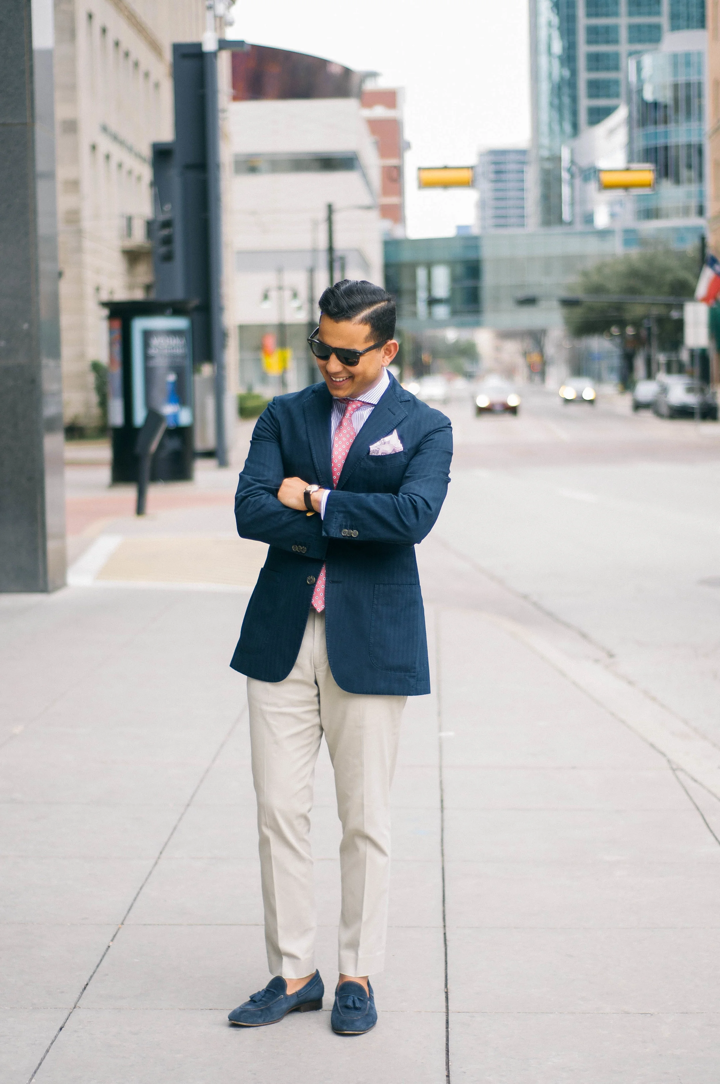 Whenever I pull together a more conservative outfit, I like to offset it with details that show a little more flair than I would normally employ. I've fallen in love with the cutaway collar on this shirt from Twillory and the functioning sleeve buttons on this Suitsupply blazer. I also decided on a puff fold with my handkerchief to lean less business-casual, and more hashtag-menswear.