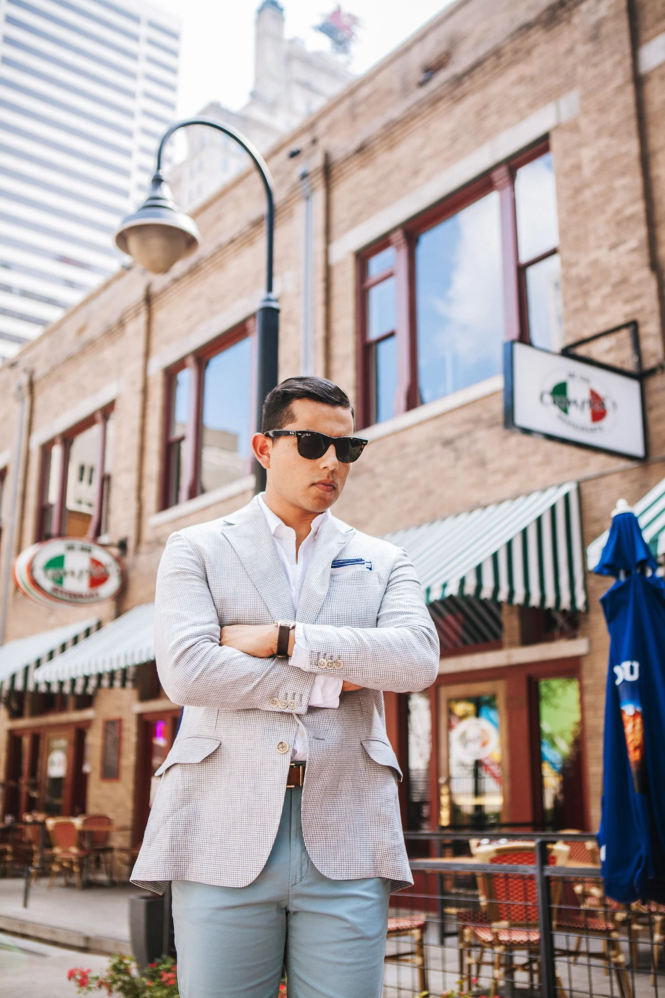 We are truly in the thick of this Texas summer, and it's become almost unbearable to dress the way I'd like to while being outside. For that reason, I decided to throw on some of the lightest (in color and in weight) garments I own. For instance, this linen blazer is un-lined and paper thin, so the sacrifice (yes, wearing ANY jacket outside in this heat is some level of sacrifice) isn't nearly as severe as it would be otherwise.