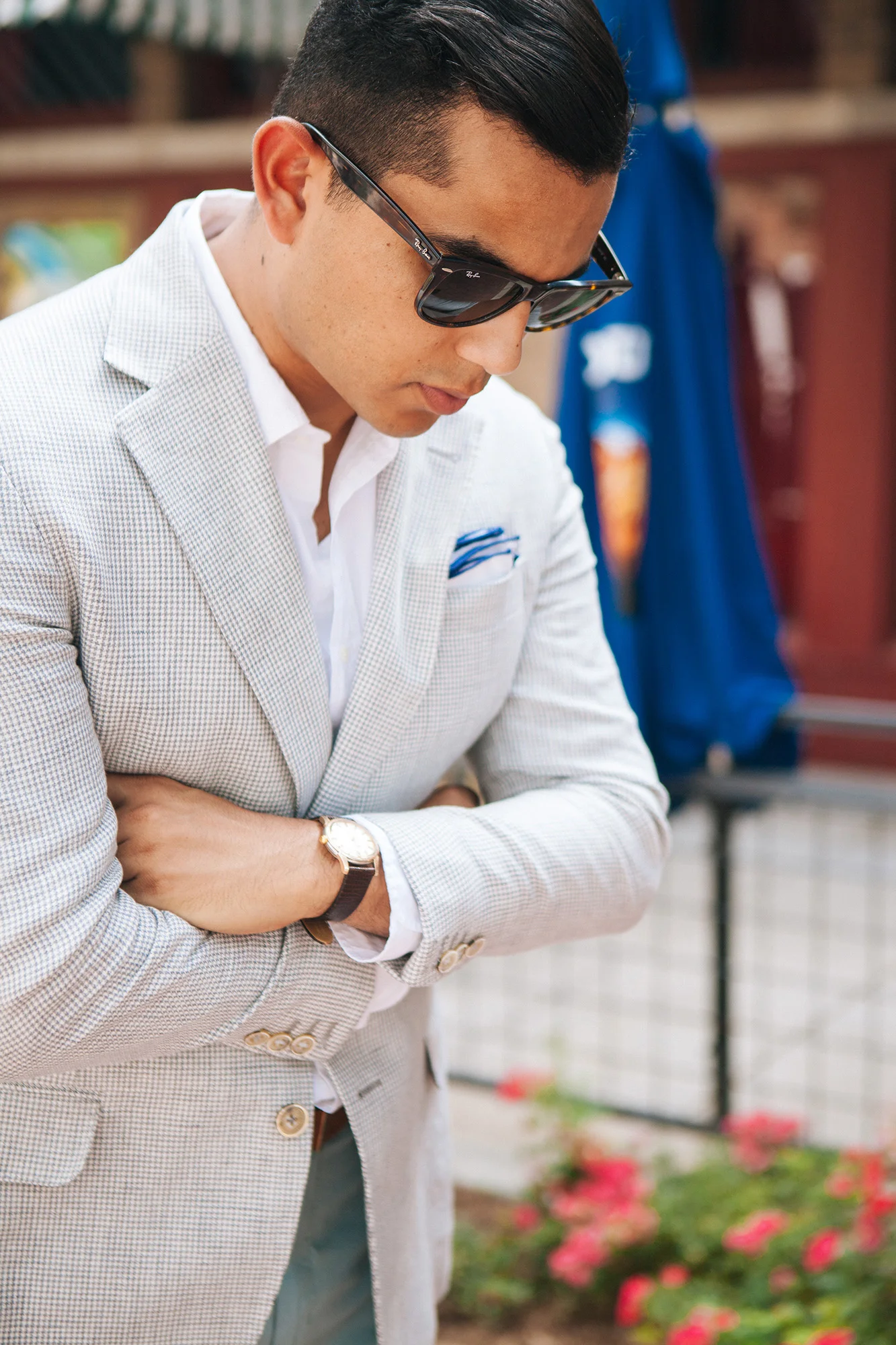 Jacket: Thomas Dean | Shirt: J.Press | Pants: H&M (similar here) | Shoes: Zara (just like these) | Belt: American Apparel (also love this one) | Pocket Square: The Tie Bar (same one here) | Watch: Omega | Sunglasses: RayBan